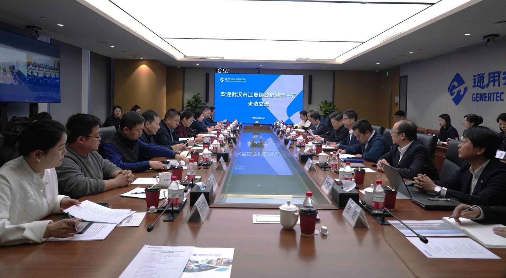 2月14日,通用技术宝石花医疗董事长、党委书记王旸,总经理、党委副书记张辉,党委副书记彭旻与武汉市政府驻京办党组书记、主任许丽华,武汉市江夏区委书记张斐围绕推动医疗机构合作运营、大健康产业深入合作进行深入交流。通用技术咨询公司总经理、党委书记王晓龙,通用技术中国医药湖北通用药业副总经理陈才,江夏区委常委、区委办公室主任罗尚国,江夏区人民政府副区长梁爽,江夏区人民政府副区长聂开天参加座谈交流。